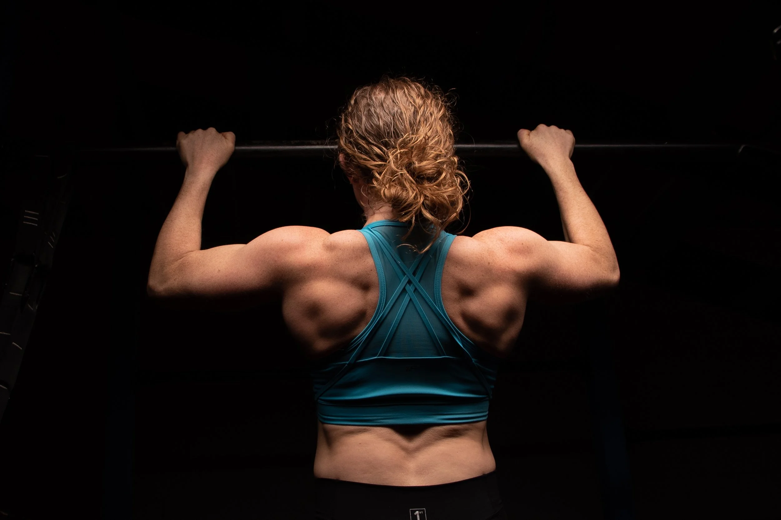 This striking black and white headshot captures a woman gazing over her knees with an intensity that radiates strength, power, and confidence. The monochromatic tones emphasize the depth of her expression, revealing a poised and self-assured presence that commands attention.